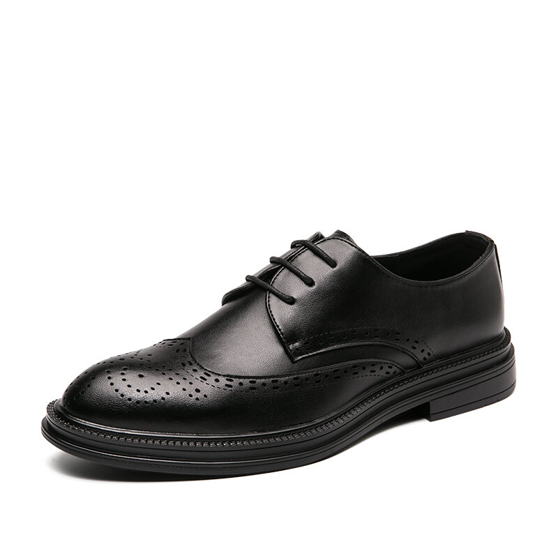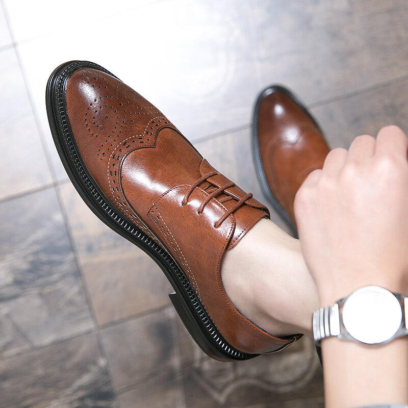 Brogue Genuine Leather Shoes British Fashion Man Business Casual Small Leather Shoes Vintage Carved Pointed Formal Dress Height Increasing Wedding Shoes