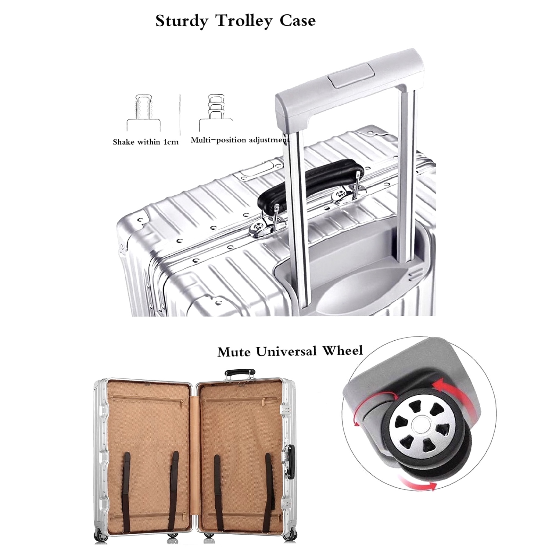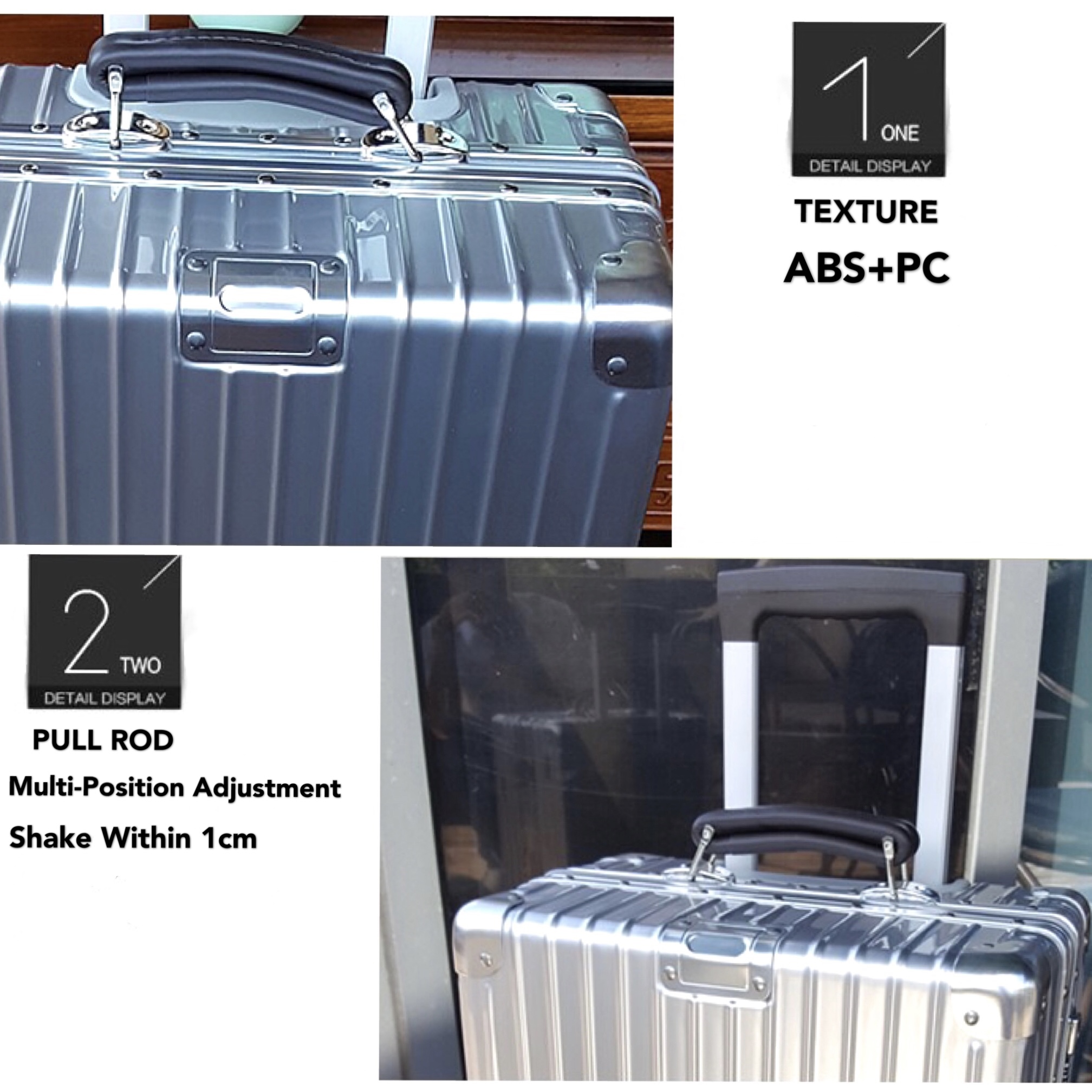 *Brand: No Brand *Texture: ABS+PC *Lock: TSA Password Lock *Wheel: Universal Wheel 360 Rotation *Pull Rod: Multi-Position Adjustment Shake Within 1CM *Handle: Synthetic Leather *Lining Material: Polyester *Internal: Zipper Pocket Cell Phone Pocket *Size: 20 inch-54*37*23CM 29 inch-76*51*29CM *Weight: 20 inch-4kg 29 inch-6kg *May Change of Mind,7 Days Return to Seller *Warranty 3 Months