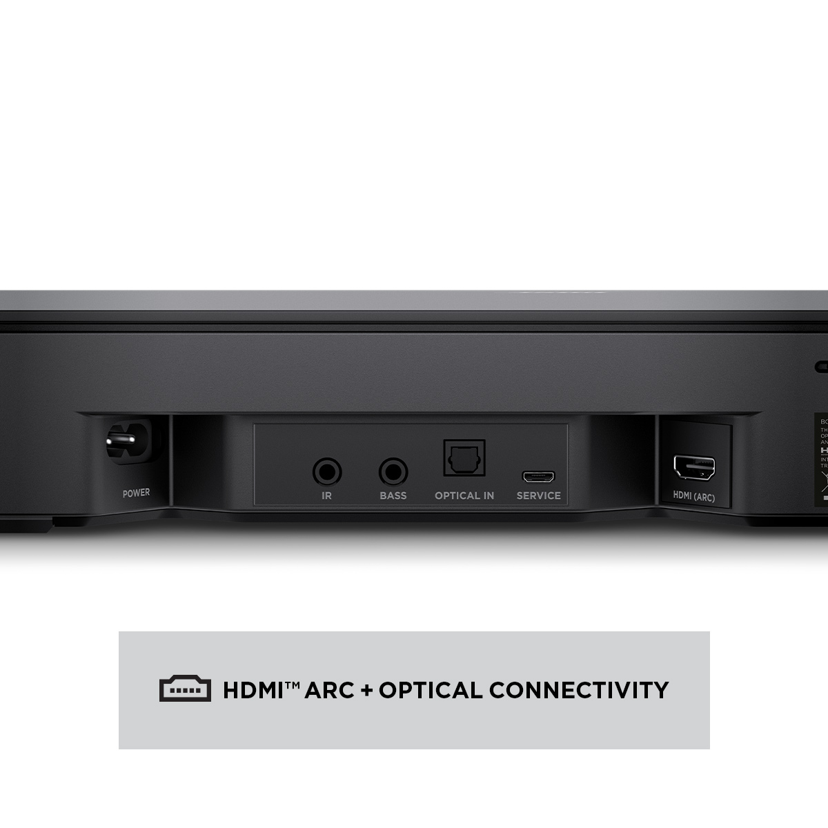 The Bose Smart Soundbar 300 uses a single connection to your TV via an optical audio cable (included) or an HDMI cable (sold separately). Simply connect the soundbar to your TV, hook it up to power, and turn it on. Then download the Bose Music app to complete your setup, connect to your Wi-Fi, and choose your voice assistant.