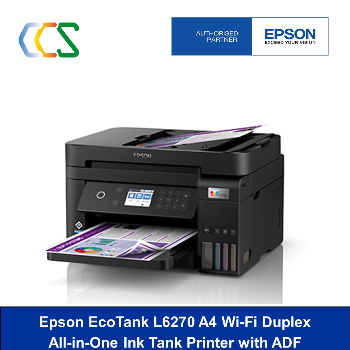 Epson EcoTank L6270 Wi-Fi Duplex Print, Scan, Copy with ADF L 6270