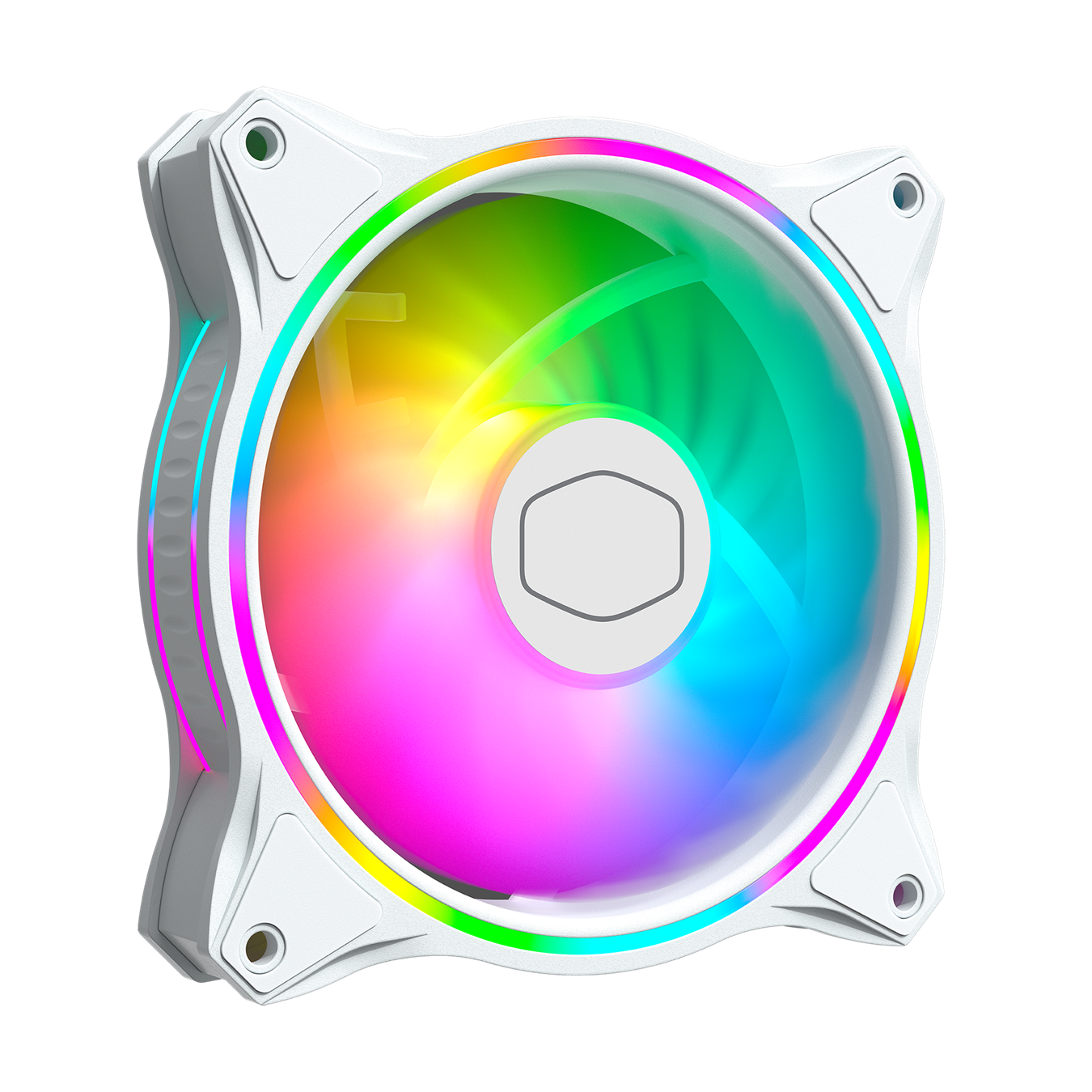 Cooler Master MasterFan MF120 Halo White Edition 3in1 Case Fan, 1800 RPM, 47 CFM, Dual Loop ARGB Lighting, 24 ARGB LEDs, 9-blade Design, Air Balance Design, Silent Cooling Technology, Jam Protection,