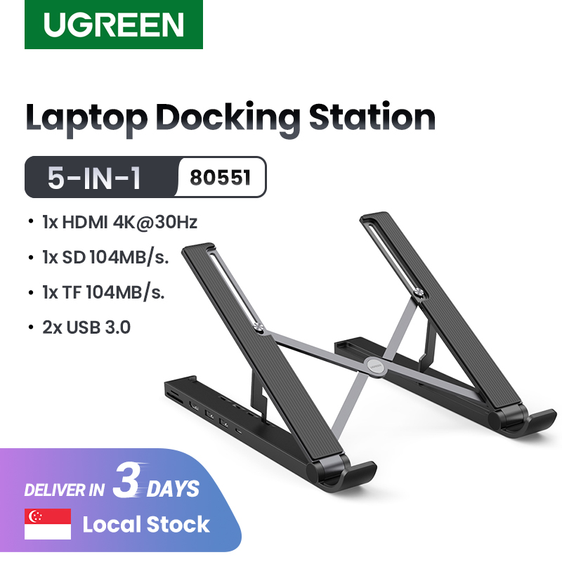 UGREEN USB C Laptop Docking Station, 4 Levels Adjustable Foldable Portable Desktop Stand with USB C 4K HDMI TF/SD 2 USB 3.0 Ports Compatible with Macbooks, HP, Dell, Acer, Asus, Lenovo and More