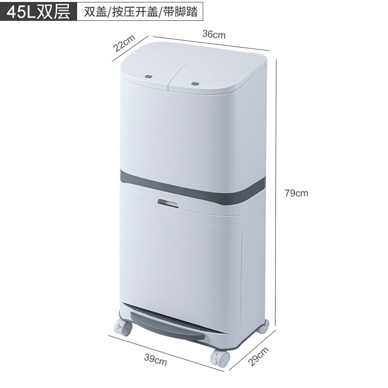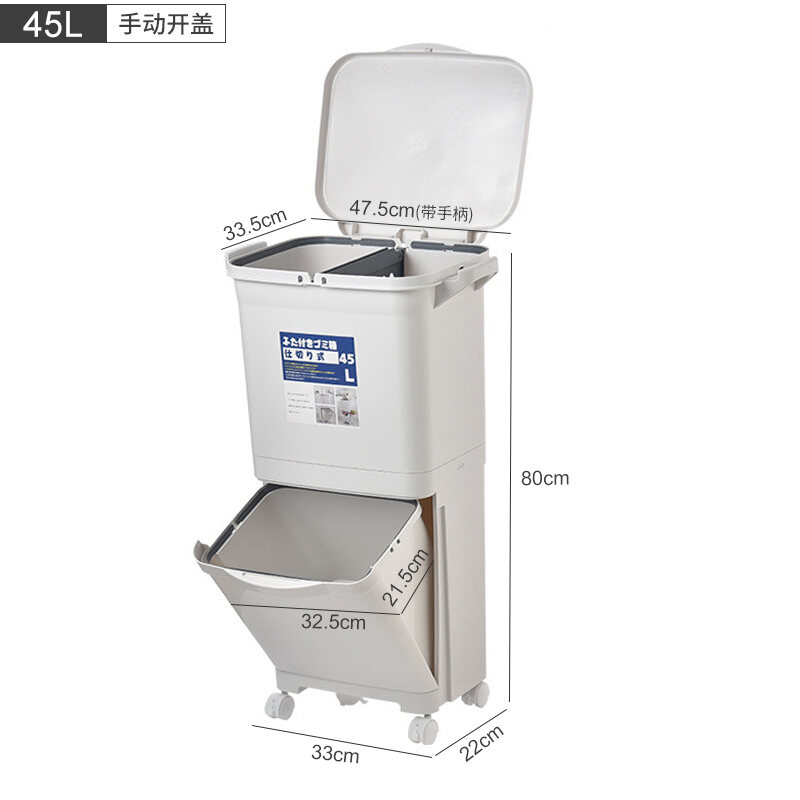 Garbage Classification Household Double-Layer Trash Can Dry Wet Separation Dustbin Japanese-Style Large Kitchen Trash Can with Lid