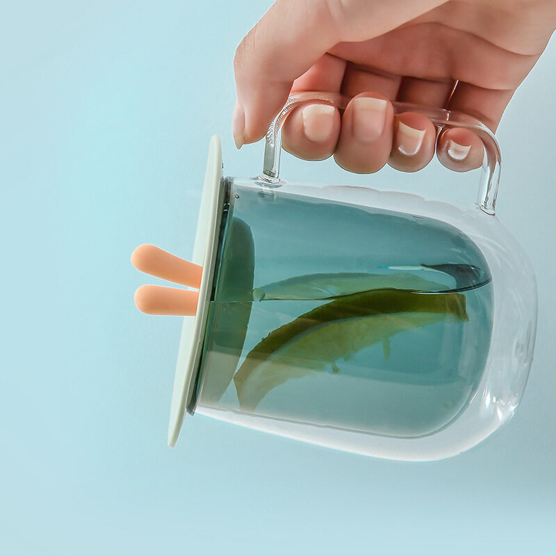 Mododo Silicone Cup Lid Heat Resistant Sealed Cover Bunny Ear Shape Leak-proof Reusable for Kids
