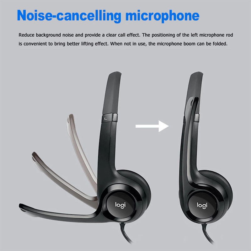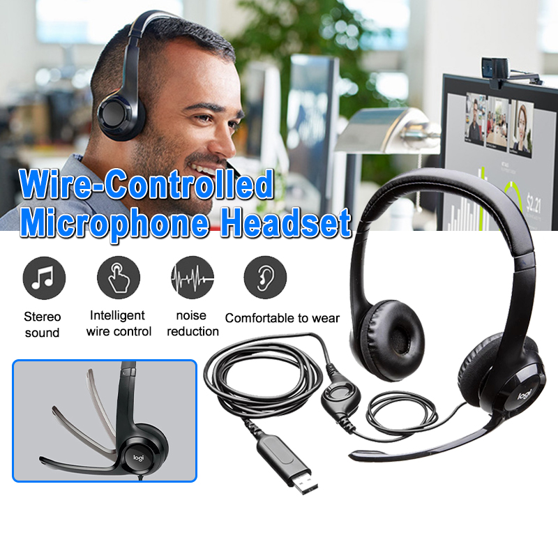Logitech H390 USB Stereo Headset Wire Control Computer Headphones with Noise-Cancelling Mic Learning Conferencing Earphone