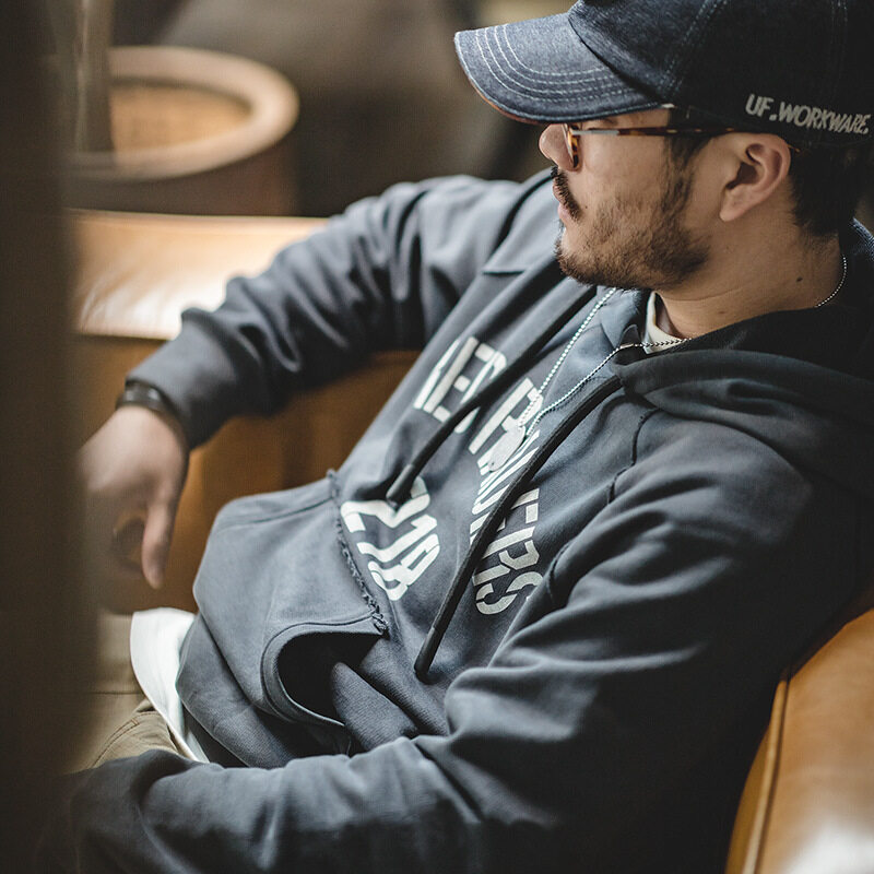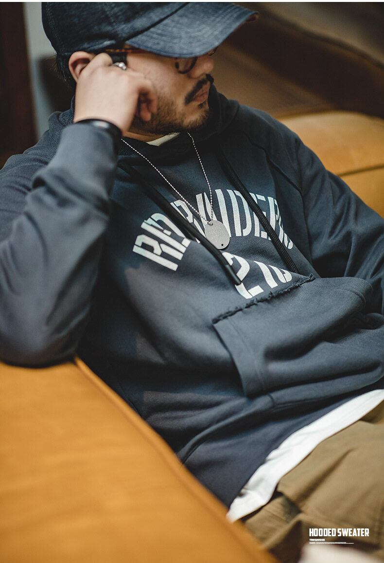 Maden brand Workwear Style 2022 spring new Men Youth American Vintage Letter Print Hoodie College Style Hip Hop Men's Layered Hoodie Lazy Pullover