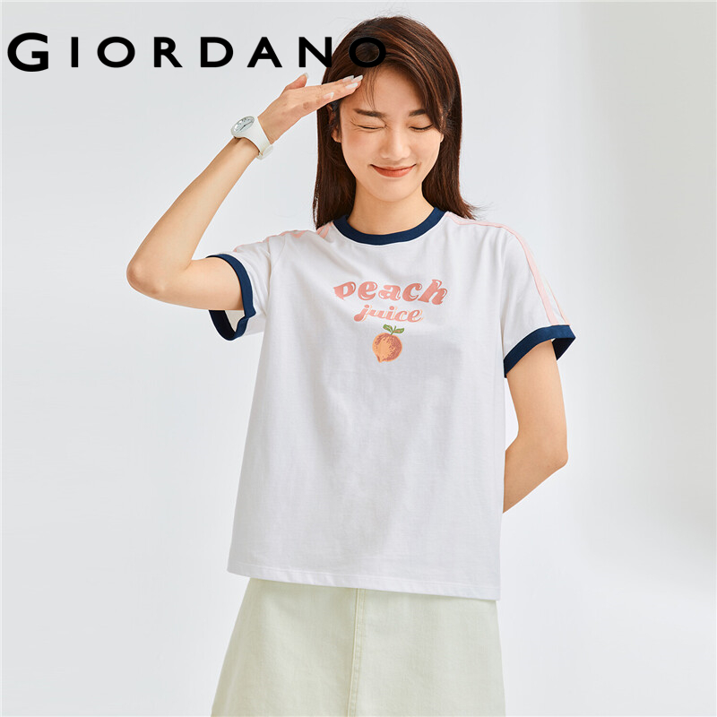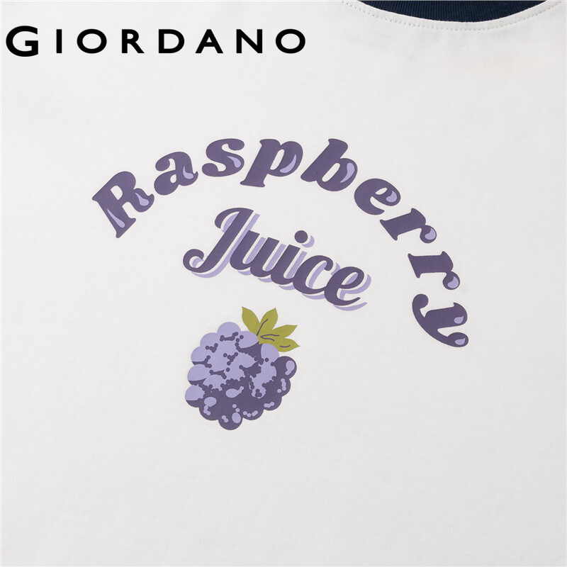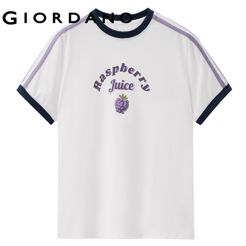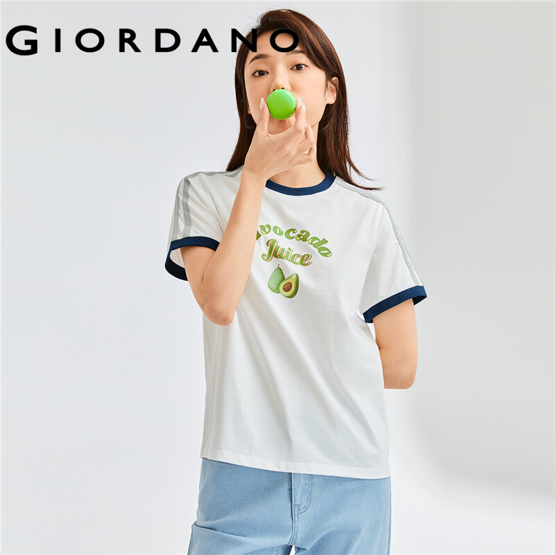 GIORDANO Women T-Shirts Fruit Print 100% Cotton Quality T-Shirts Short Sleeve Summer Contrast Crewneck Casual T-Shirts 05322398