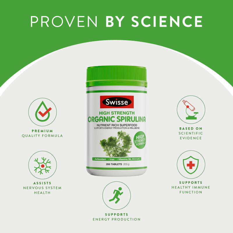 Swisse High Strength Organic Spirulina 200 Tablets (EXP:02 2025)