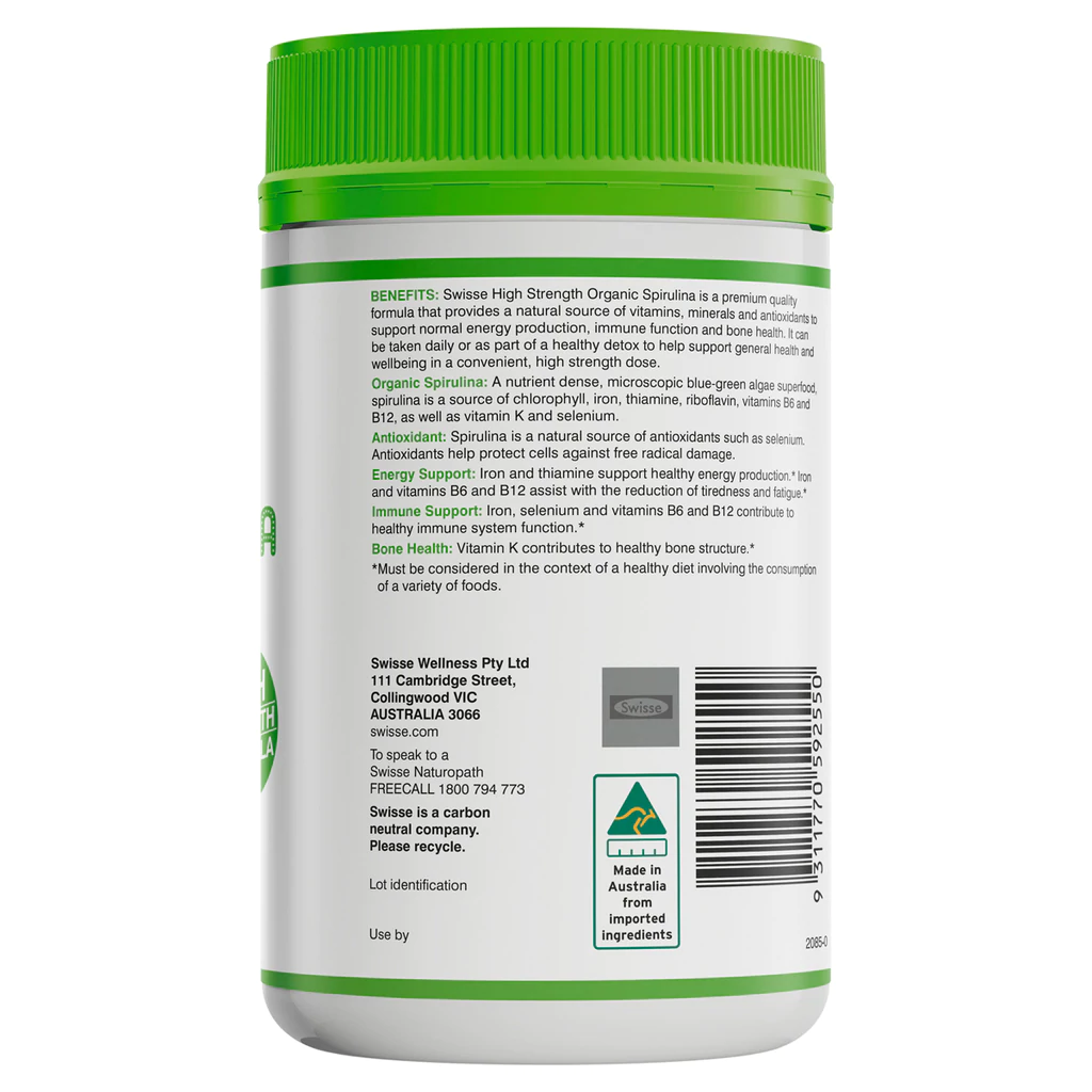 Swisse Organic Spirulina can be taken daily or as part of a healthy detox, which can be beneficial to support general wellbeing.