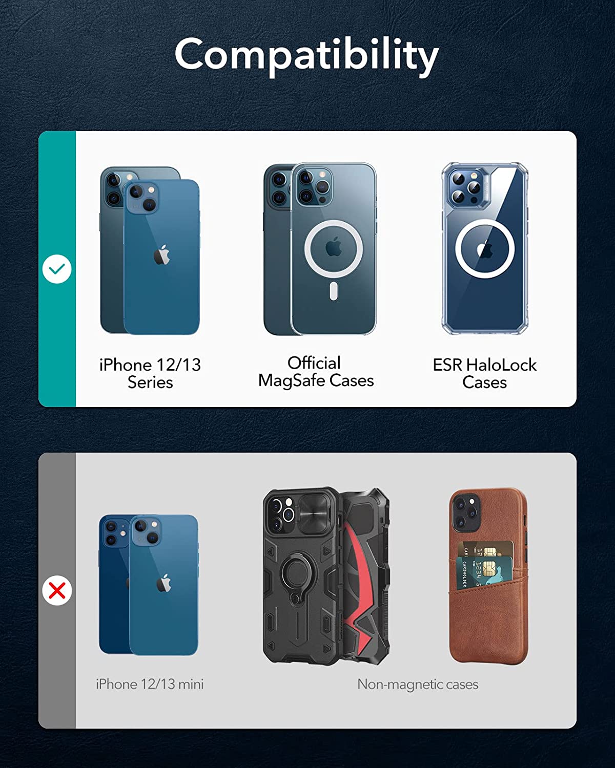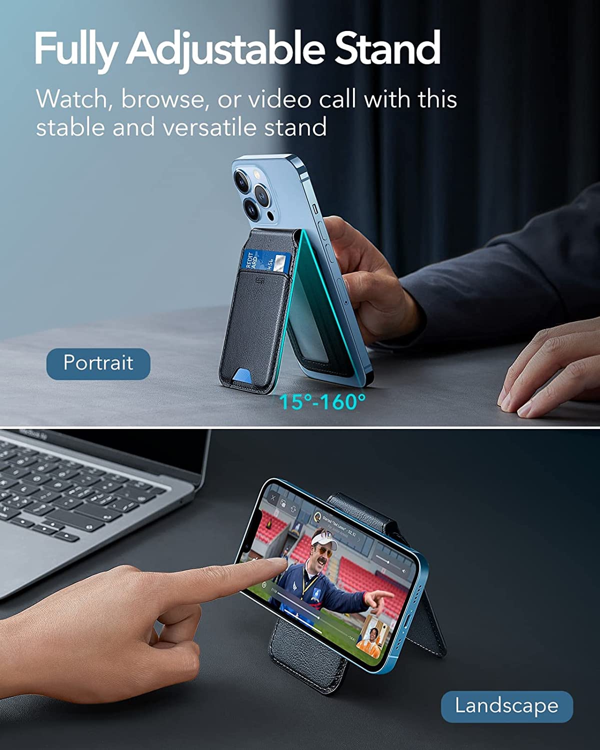 ESR HaloLock Vegan Leather Wallet Stand, MagSafe Wallet and Adjustable Stand, Compatible with iPhone 13/13 Pro/13 Pro Max/12/12 Pro/12 Pro Max, 3 Card Holder, Not Compatible with iPhone Mini