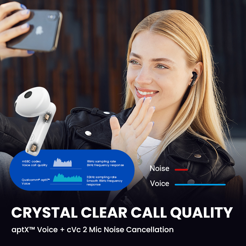 ?CRYSTAL CLEAR CALL QUALITY---Dual microphones built in each side, coupled with Qualcomm® aptX™ Voice technology