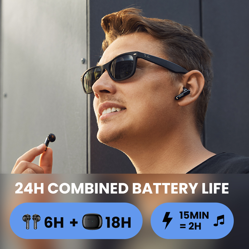 ?Up to 6 hours music playtime+18 hours charging case=24 hours playback time to enjoy music