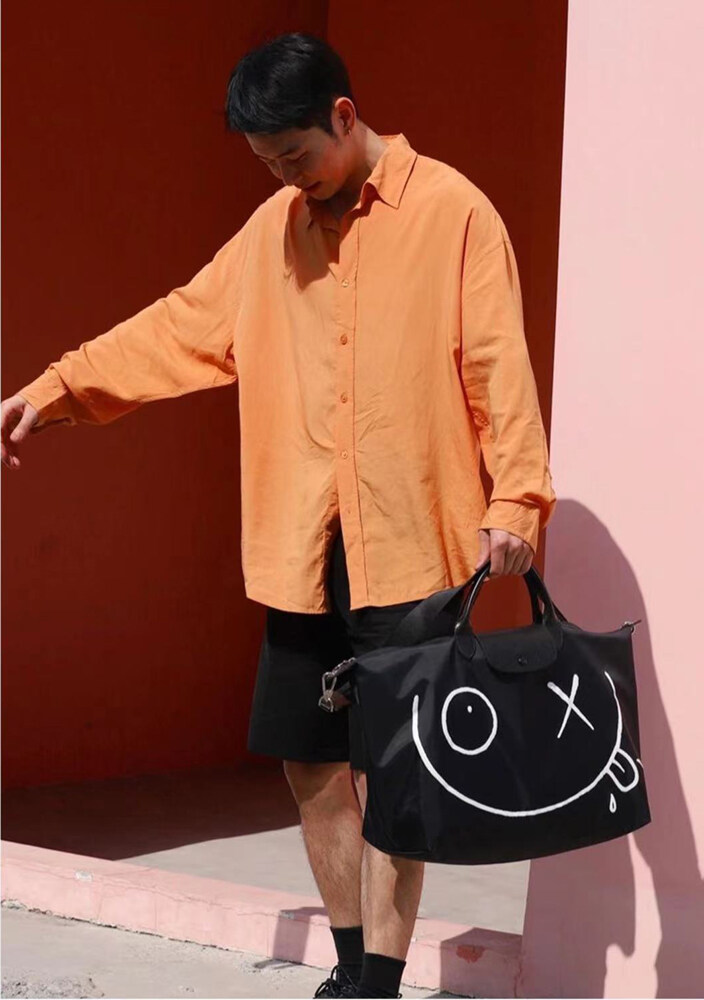 【SS22】100% original Longchamp official store bag L1624 graffiti large capacity travel bag long champ bags Duffel & Weekender Bags