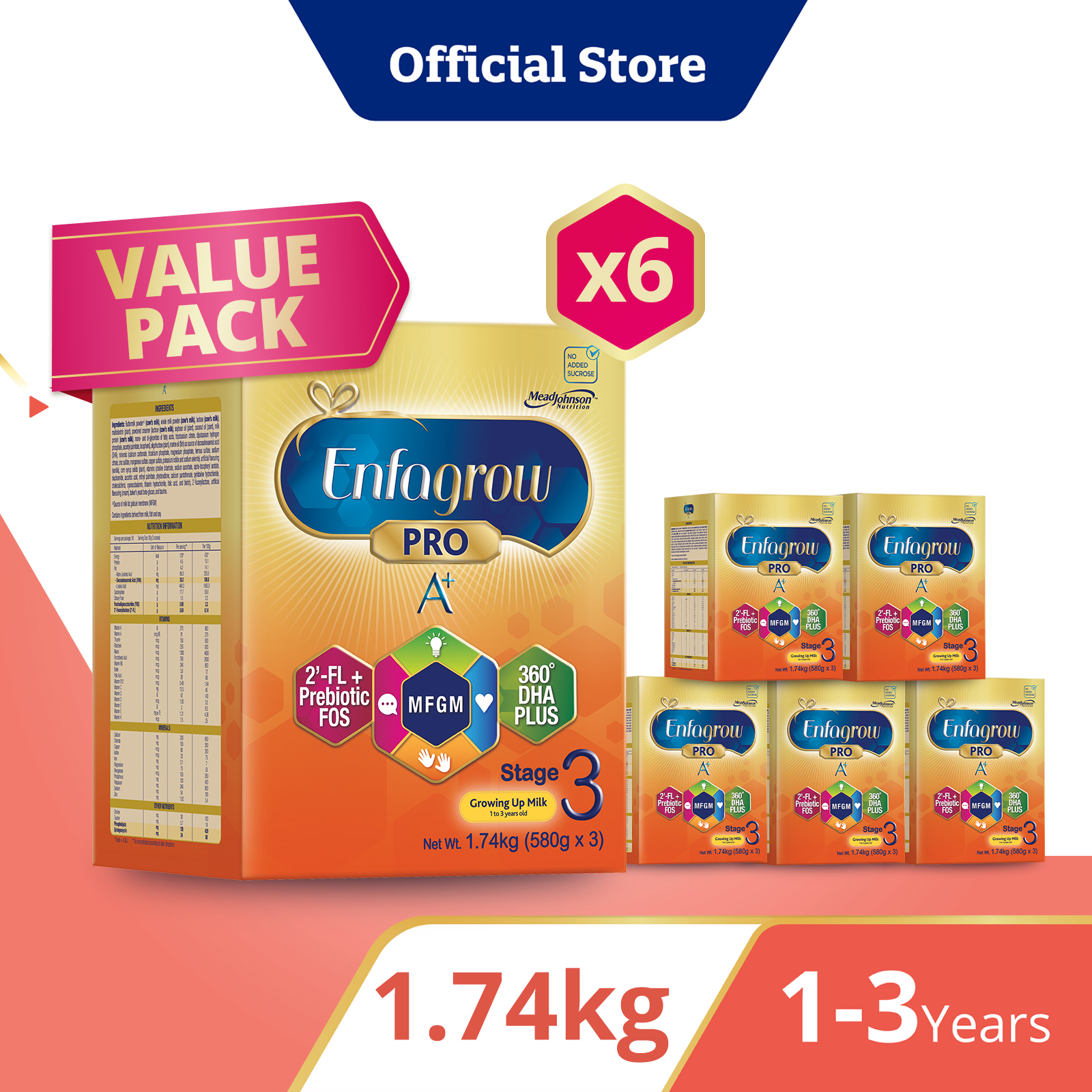 [Bundle of 6] Enfagrow Pro A+ Stage 3 1.74kg for Children (1-3Y) Value Pack