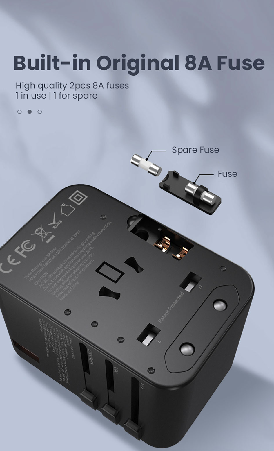 • Built-in Original 2pcs 8A Fuse