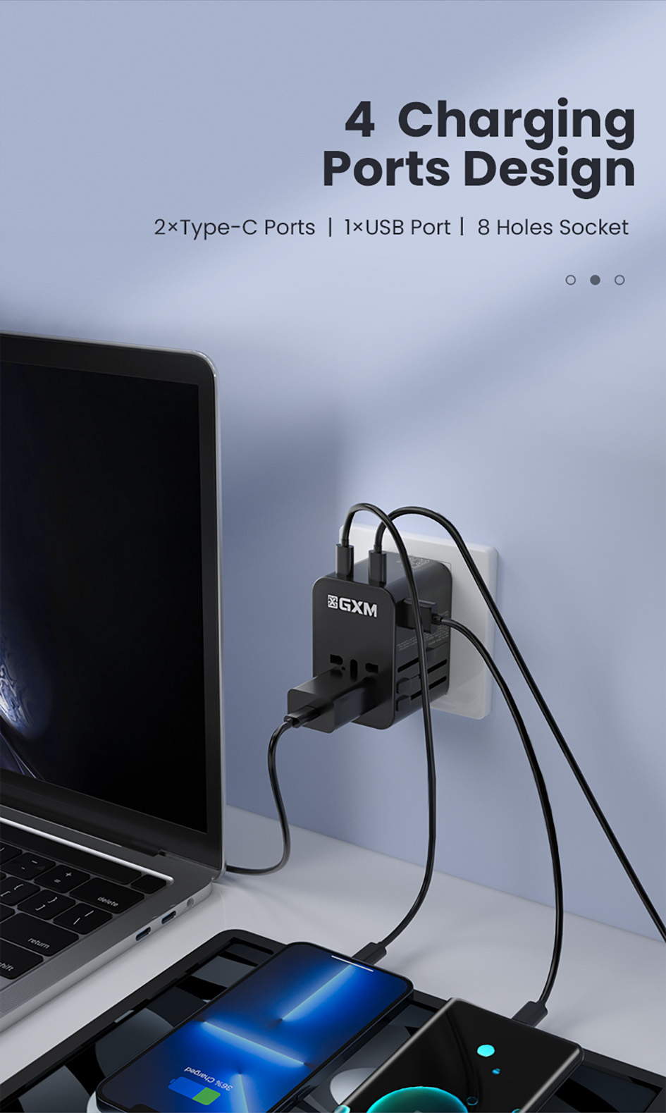 • 2x Type-C , 1x USB & 8 Holes Socket