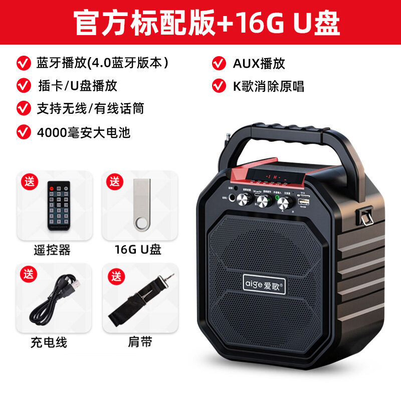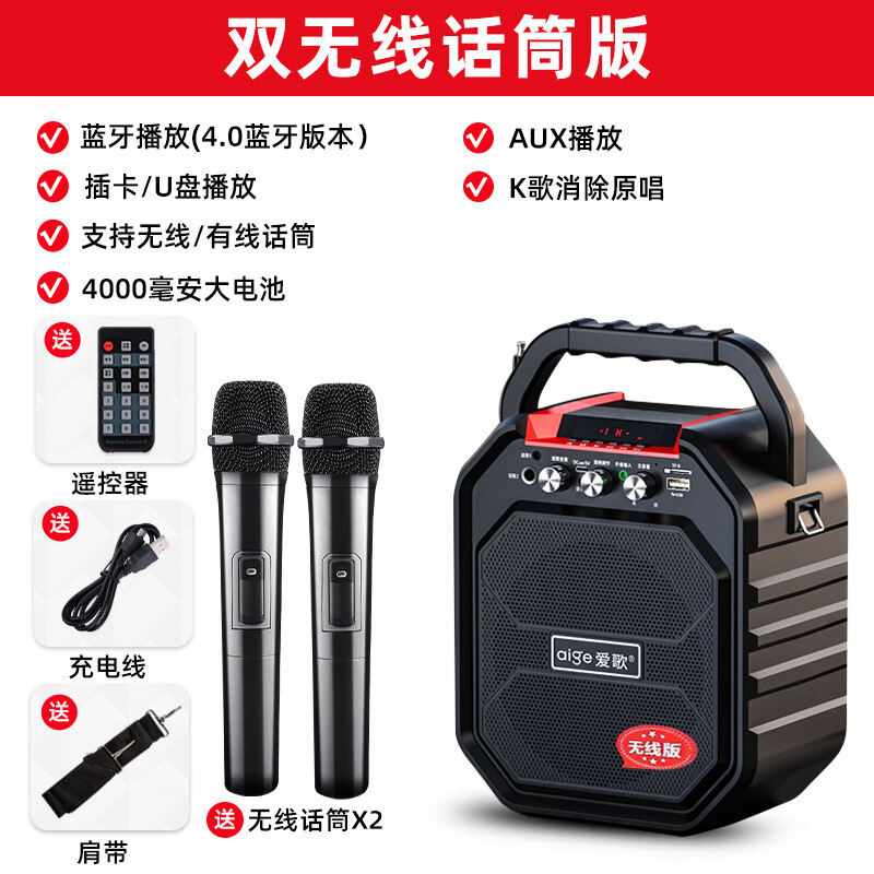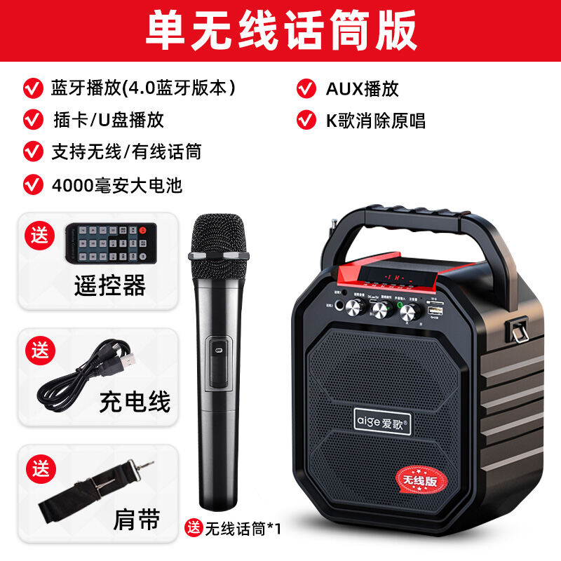 Aige S28 Outdoor Square Dance Audio Large Volume Wireless Bluetooth Microphone Karaoke Portable Speaker Singing Effect