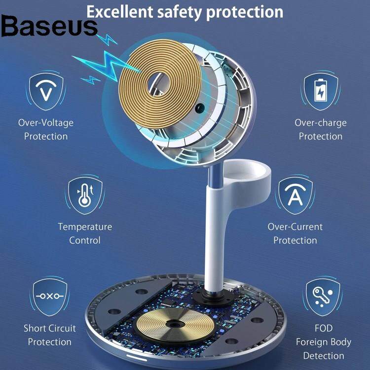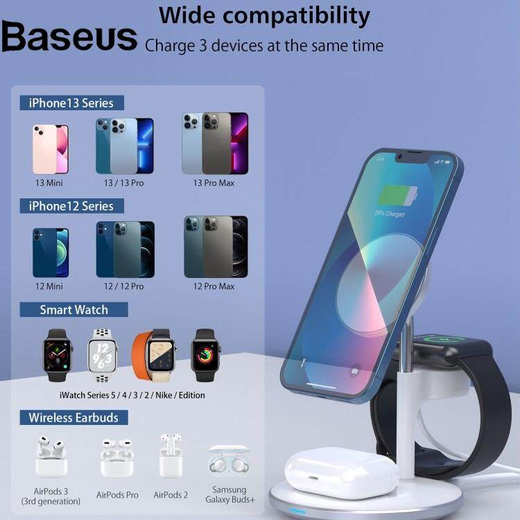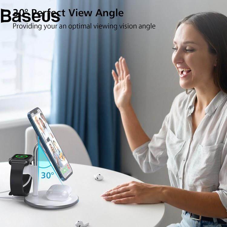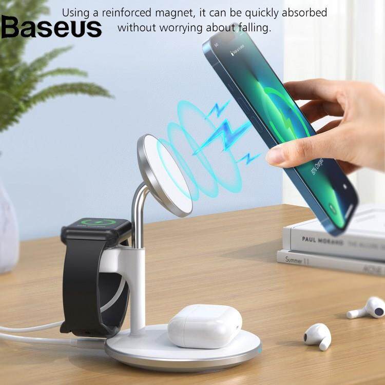 Baseus JJT-980 Desktop Charging Stand 3 in 1 Detachable Magnetic Wireless Charger for iPhone / Apple Watch / Earphones