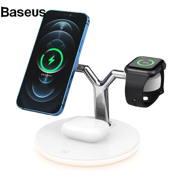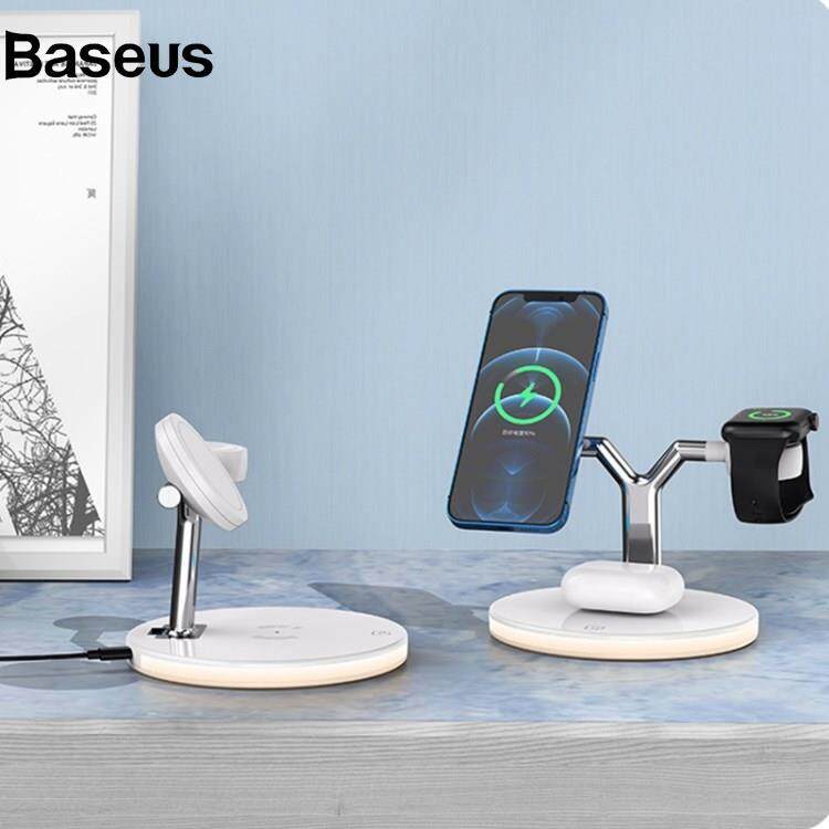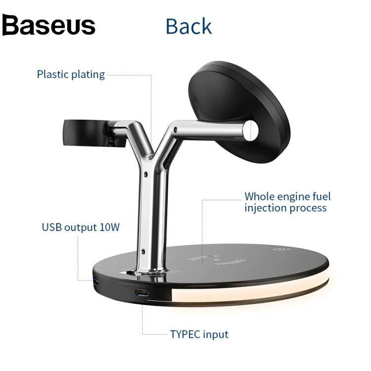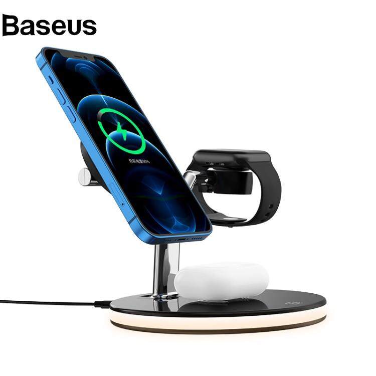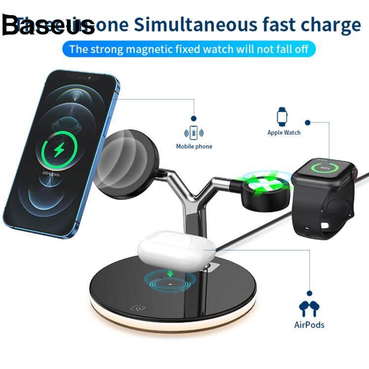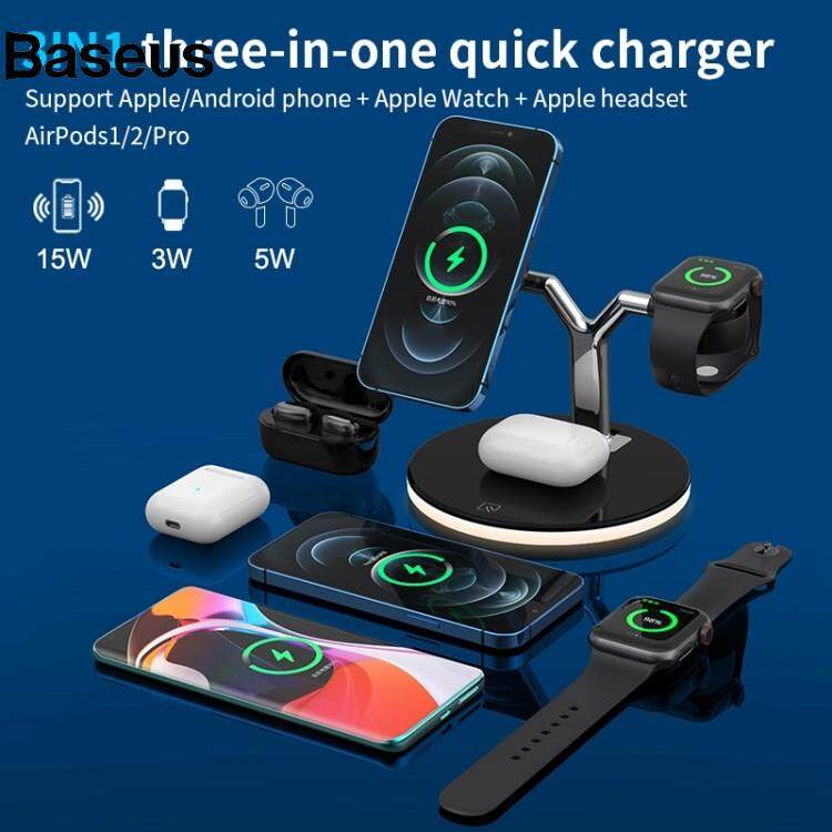 Baseus 970 For iPhone / Apple Watch / AirPods 3 in 1 Wireless Charger 15W Fast Charging Desktop Stand Cradle with Light