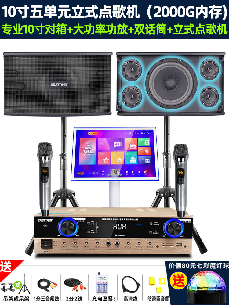 SAST Family KTV Audio Set Karaoke Machine Full Set Home Theater Living Room Karaoke Player All-in-One Professional Card Box Singing System Speaker Amplifier Microphone Special Equipment