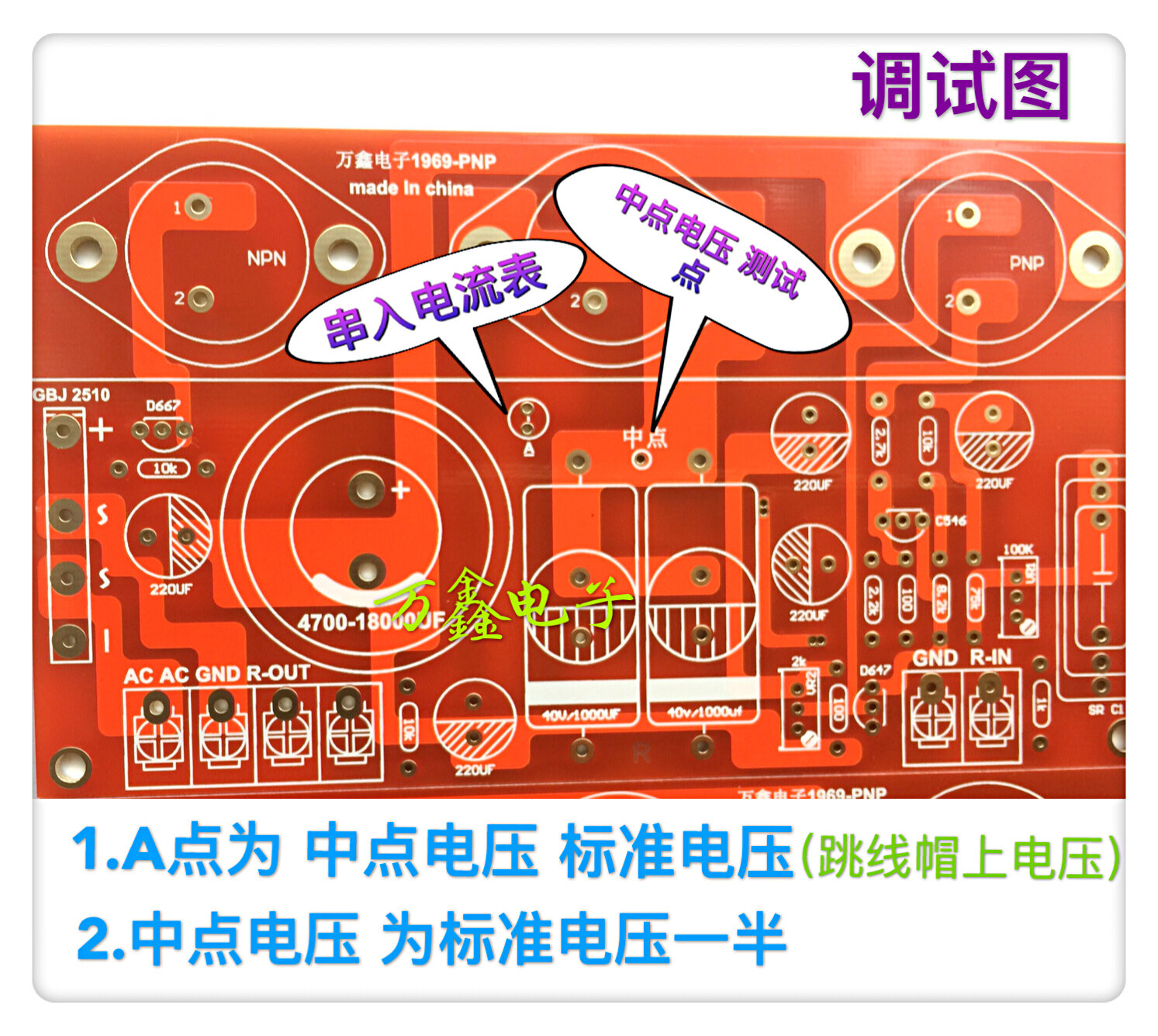 1. Mid-point voltage debugging: the mid-point voltage test point is the positive end (upper end) of the output capacitor.