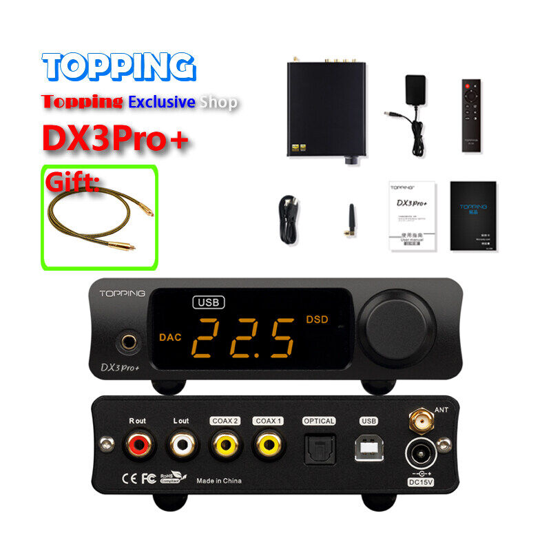 TOPPING DX3PRO+ USB DAC QCC5125 Bluetooth 5.0 CSS ES9038Q2M XMOS XU208 DSD512 APTX-HD Headphone Output AMP LDAC DX3 PRO