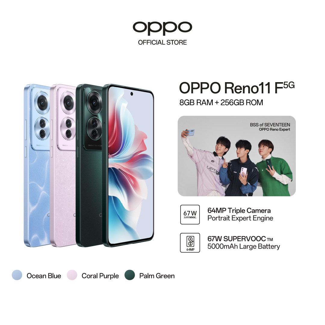 OPPO Reno11 F 5G 16(8+8GB) + 256GB / 64MP Ultra-Clear Triple Camera / 67W SUPERVOOC / IP65 Water & Dust Rating / 2 Years Local Warranty / Free Sports Bluetooth Headset