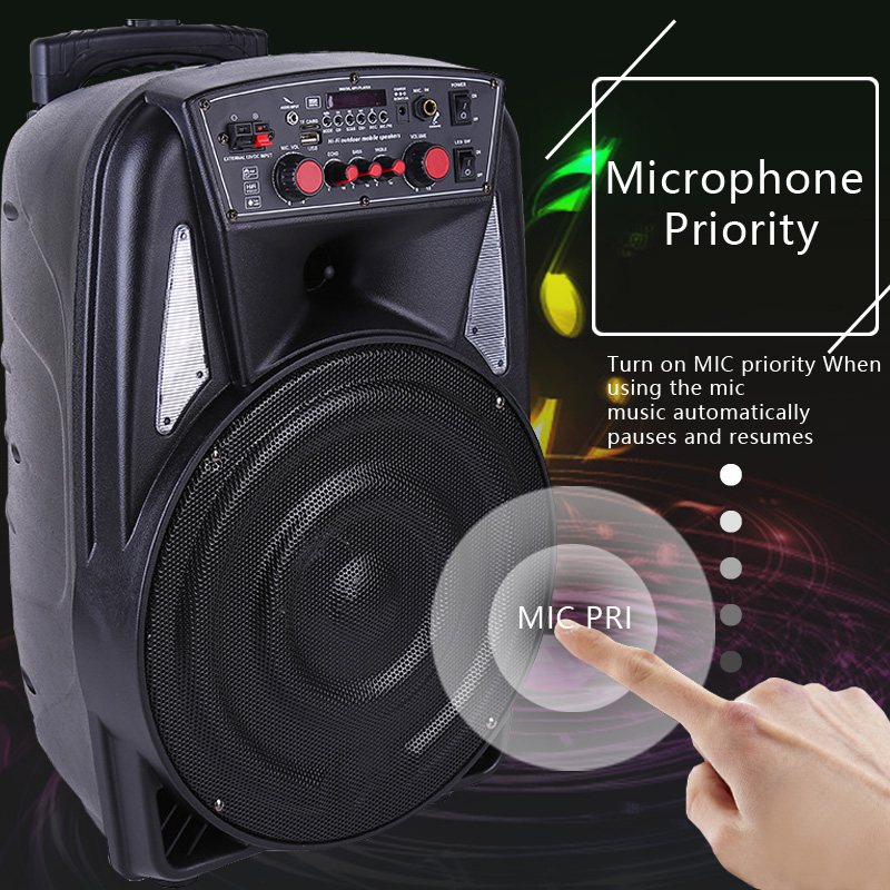 Long-Lasting Rechargeable Battery (2200mA), Charges Through Ac Or Dc With Cable To Charge In The Car (Cable Included).The long-lasting battery provides you 3-4 hours.Bluetooth-Enabled: Pairs Effortlessly To Other Bluetooth Devices, Compatible With All Phones and Tablets.Retractable Handle, Wheels At The Base, Stationary Handle For Easy Transport.Comes with 2 Mic(Choose) And Mic priority function.