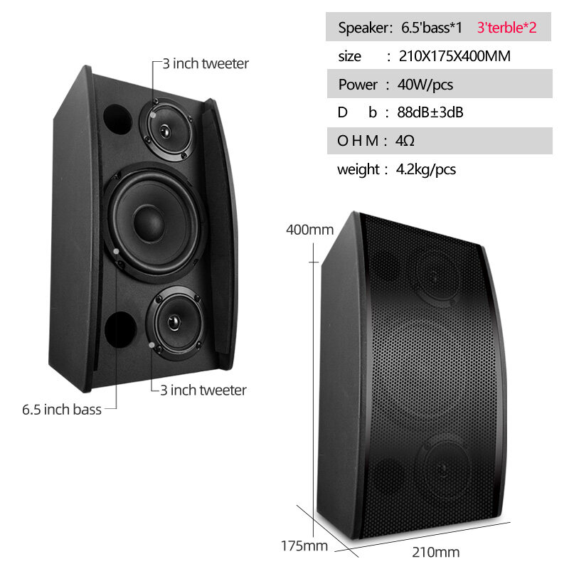 Each speaker uses a 6.5 inch woofer x1 and 3.5 inch tweeter x2.Amplifier built-in Bluetooth for easy entertainment.