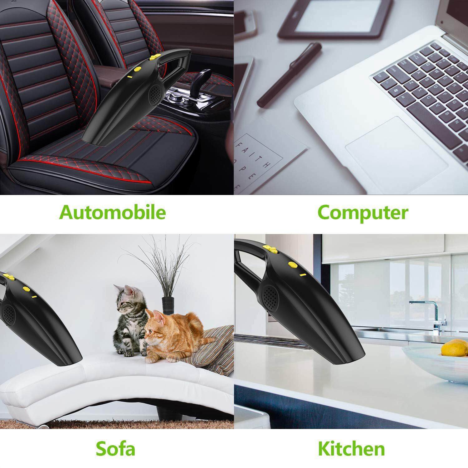 POWERFUL CYCLONIC SUCTION- With 12V Lithium Battery, 120w motor and radial cyclone, hand-held vacuum provides a stable 4500PA strong cyclonic suction. Approximately 80db low noise. Supporting Dry and Wet use. Good for daily quick pick ups. A smart choice for both car cleaning and home cleaning