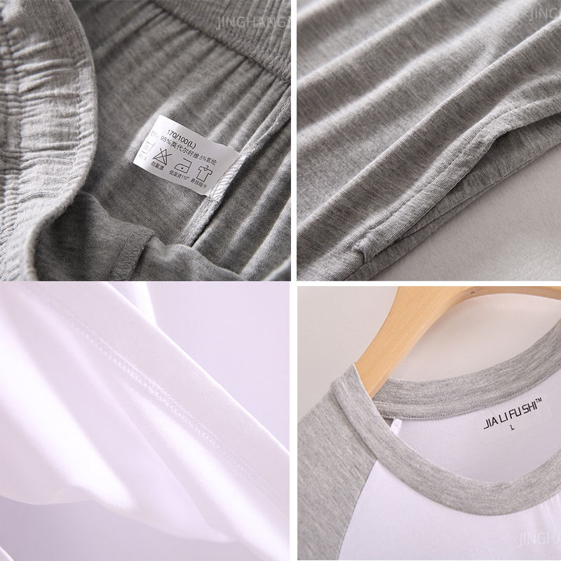 Yehury Autumn Mens Pajamas Set Long Sleeve Casual Soft Shirt Sleep Bottom Pants 2pcs Set Men Bamboo Fiber Home Clothes Plus Size Father's Gift