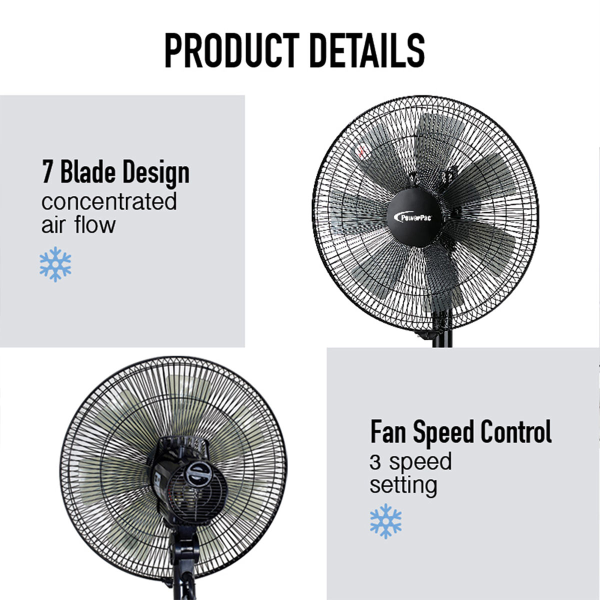 Powerpac Stand Fan with Convertible Height (PPFS212)