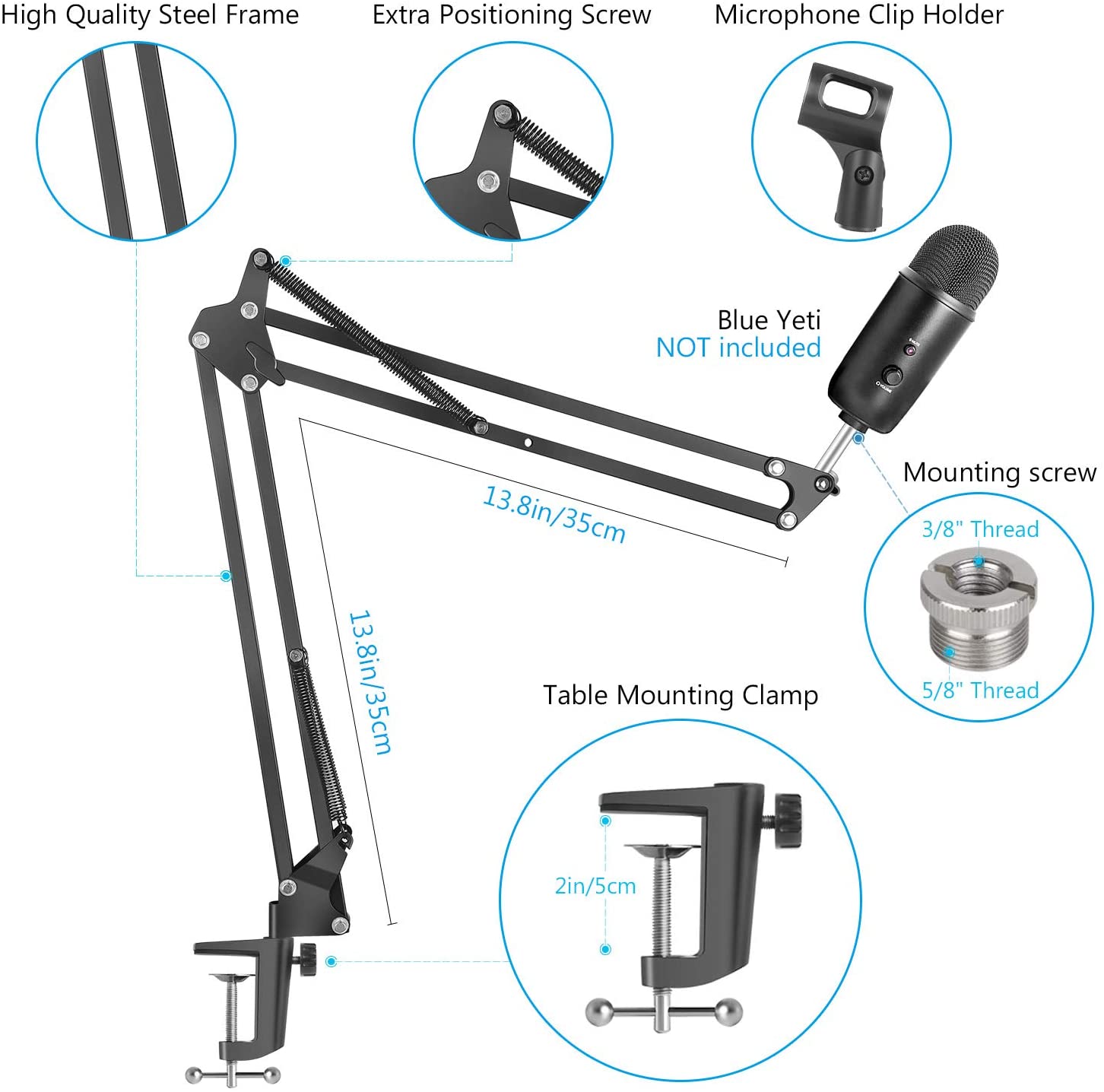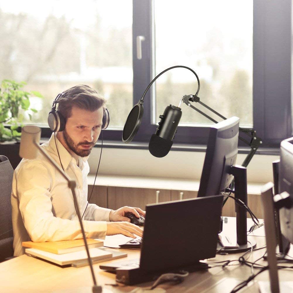Heavy Duty Microphone Stand (Dual layered Windscreen Pop filter option available ), Suspension Boom Arm Stands for Blue Yeti , Blue Yeti X , Yeti Nano, Blue Snowball and Other Mic